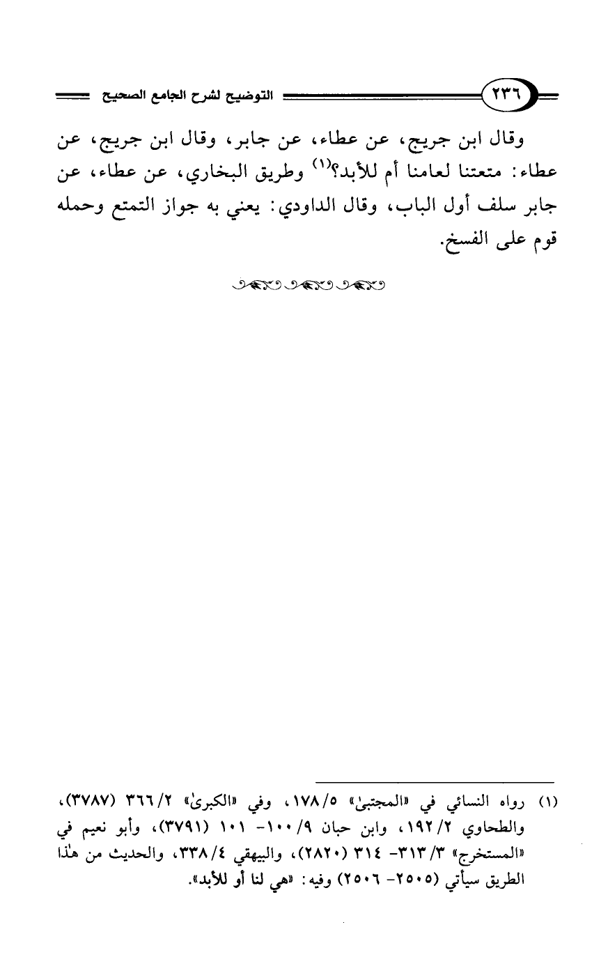 (¬1) رواه النسائي في "المجتبى" 5/ 178، وفي "الكبرى" 2/ 366 (3787)، والطحاوي 2/ 192، وابن حبان 9/ 100 - 101 (3791)، وأبو نعيم في "المستخرج" 3/ 313 - 314 (2820)، والبيهقي 4/ 338، والحديث من هذا الطريق سيأتي (2505 - 2506) وفيه: "هي لنا أو للأبد".
