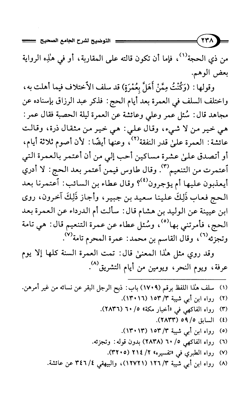 (¬8) رواه ابن أبي شيبة 3/ 126 (12721)، والبيهقي 4/ 346 عن عائشة.