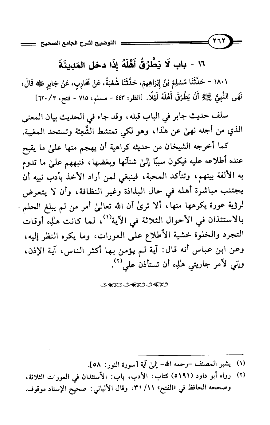 (¬2) رواه أبو داود (5191) كتاب: الأدب، باب: الاستئذان في العورات الثلاثة، وصححه الحافظ في "الفتح" 11/ 31، وقال الألباني: صحيح الإسناد موقوف.
