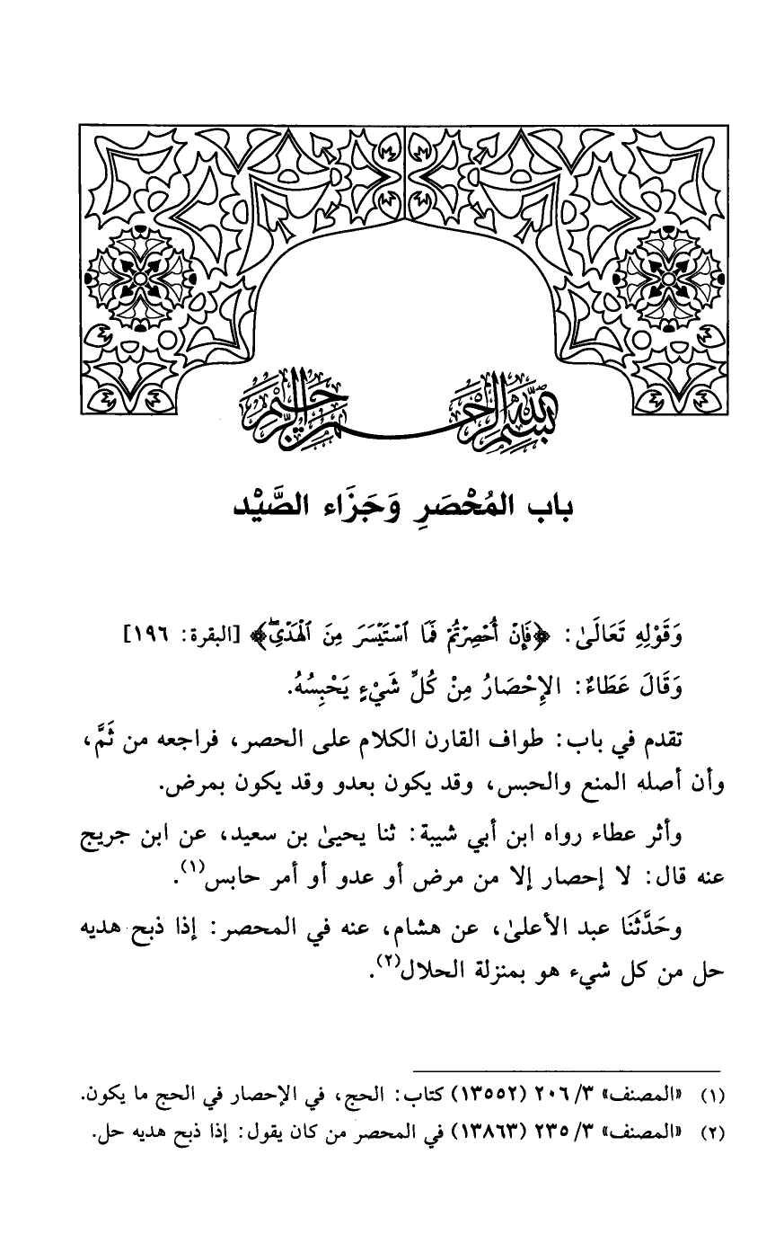 (¬1) "المصنف" 3/ 206 (13552) كتاب: الحج، في الإحصار في الحج ما يكون.