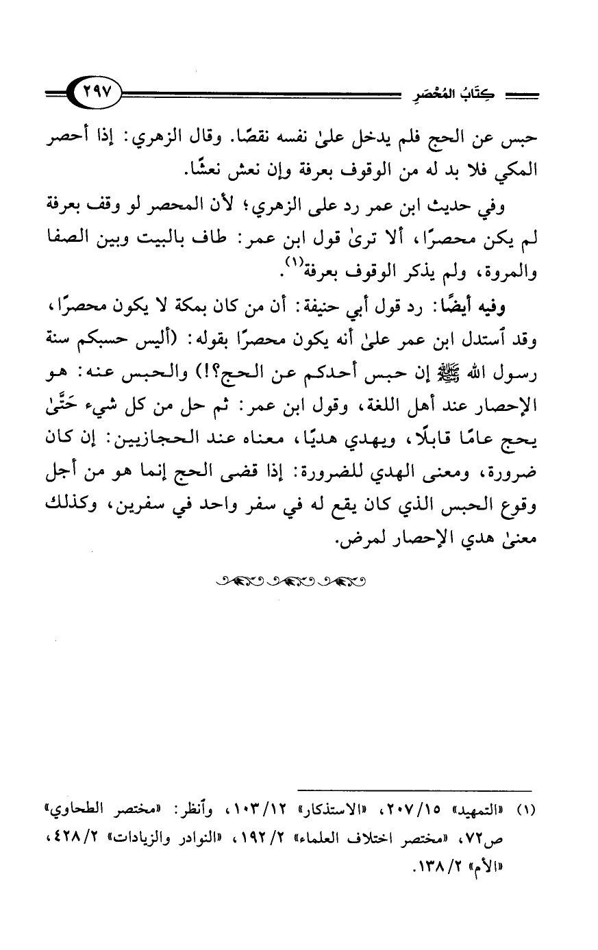 (¬1) "التمهيد" 15/ 207، "الاستذكار" 12/ 103، وانظر: "مختصر الطحاوي" ص 72، "مختصر اختلاف العلماء" 2/ 192، "النوادر والزيادات" 2/ 428، "الأم" 2/ 138.