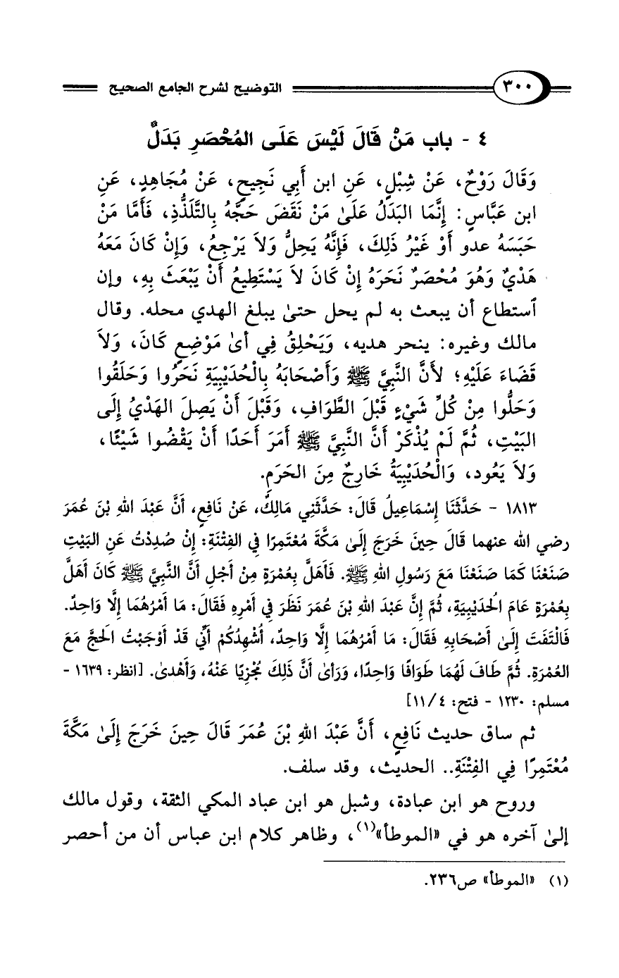 4 - باب مَنْ قَالَ لَيْسَ عَلَى المُحْصَرِ بَدَلٌ