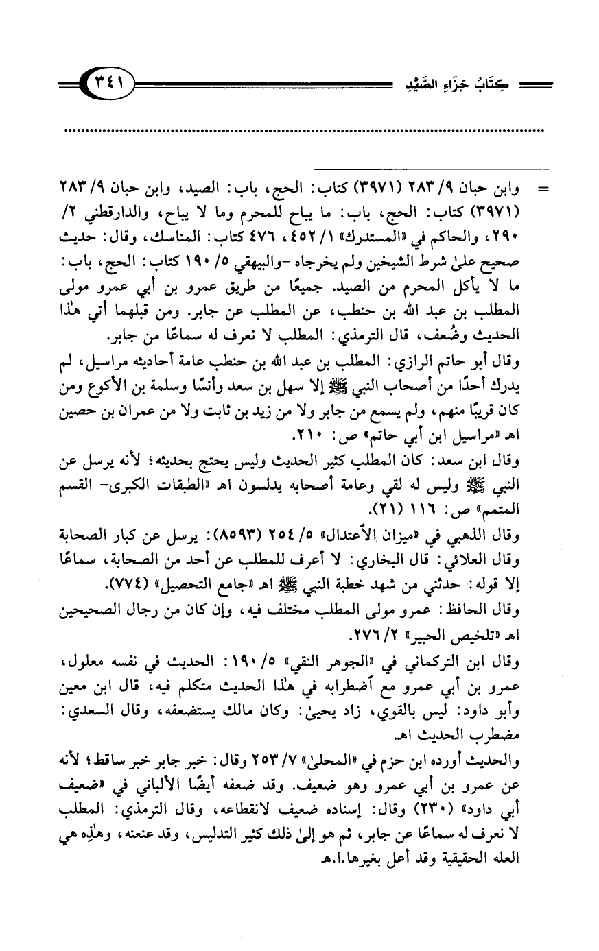 وقال الذهبي في "ميزان الاعتدال" 5/ 254 (8593): يرسل عن كبار الصحابة وقال العلائي: قال البخاري: لا أعرف للمطلب عن أحد من الصحابة، سماعًا إلا قوله: حدثني من شهد خطبة النبي - صلى الله عليه وسلم - اهـ "جامع التحصيل" (774).
