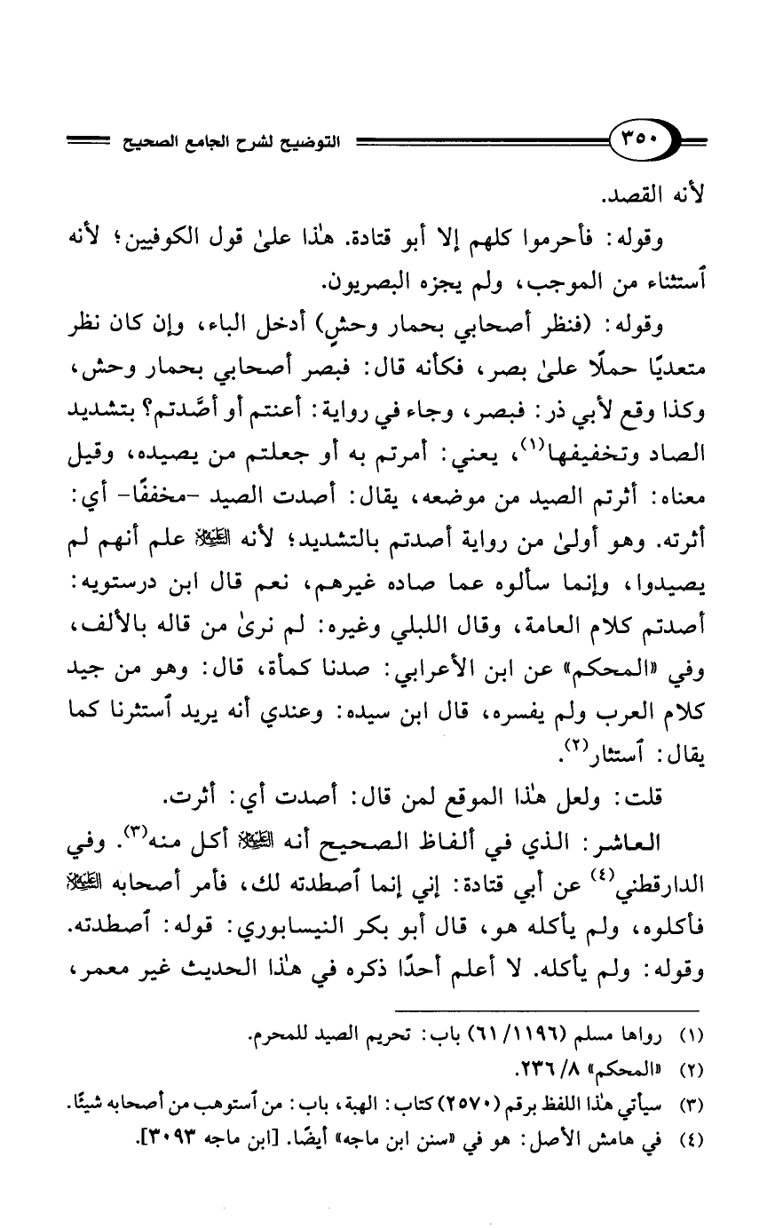 (¬1) رواها مسلم (1196/ 61) باب: تحريم الصيد للمحرم.