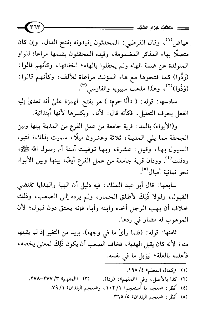 عياض (¬1)، وقال القرطبي: المحدثون يقيدونه بفتح الدال، وإن كان متصلًا بهاء المذكر المضمومة، وقيده المحققون بضمها مراعاة للواو المتولدة عن ضمة الهاء ولم يحفلوا بالهاء؛ لخفائها، وكأنهم قالوا: (رَدُّوا) كما فتحوها مع هاء المؤنث مراعاة للألف، وكأنهم قالوا: (وَدُّوا) (¬2)، وهذا مذهب سيبويه والفارسي (¬3).