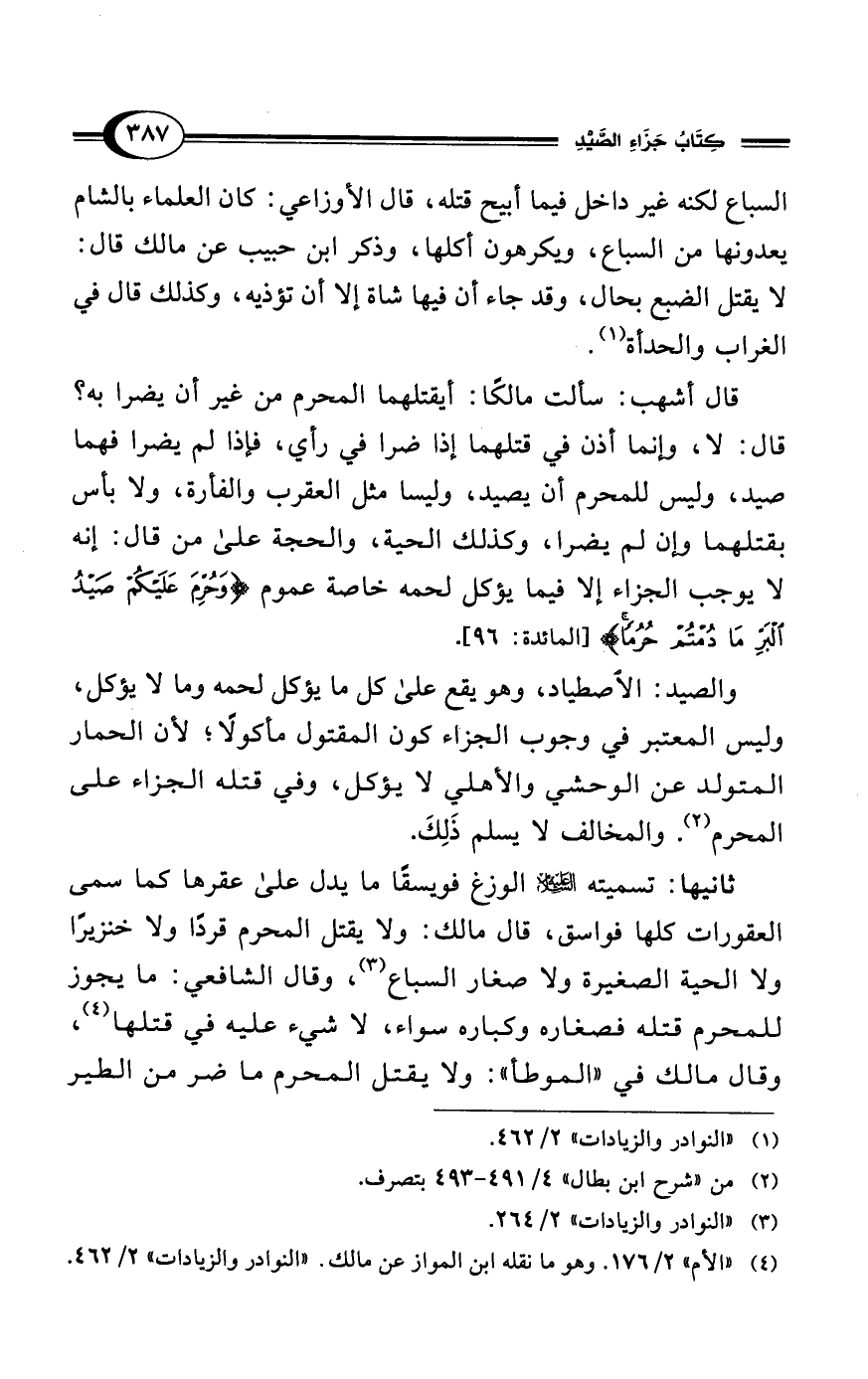 ثانيها: تسميته - عليه السلام - الوزغ فويسقًا ما يدل على عقرها كما سمى العقورات كلها فواسق، قال مالك: ولا يقتل المحرم قردًا ولا خنزيرًا ولا الحية الصغيرة ولا صغار السباع (¬3)، وقال الشافعي: ما يجوز للمحرم قتله فصغاره وكباره سواء، لا شيء عليه في قتلها (¬4)، وقال مالك في "الموطأ": ولا يقتل المحرم ما ضر من الطير