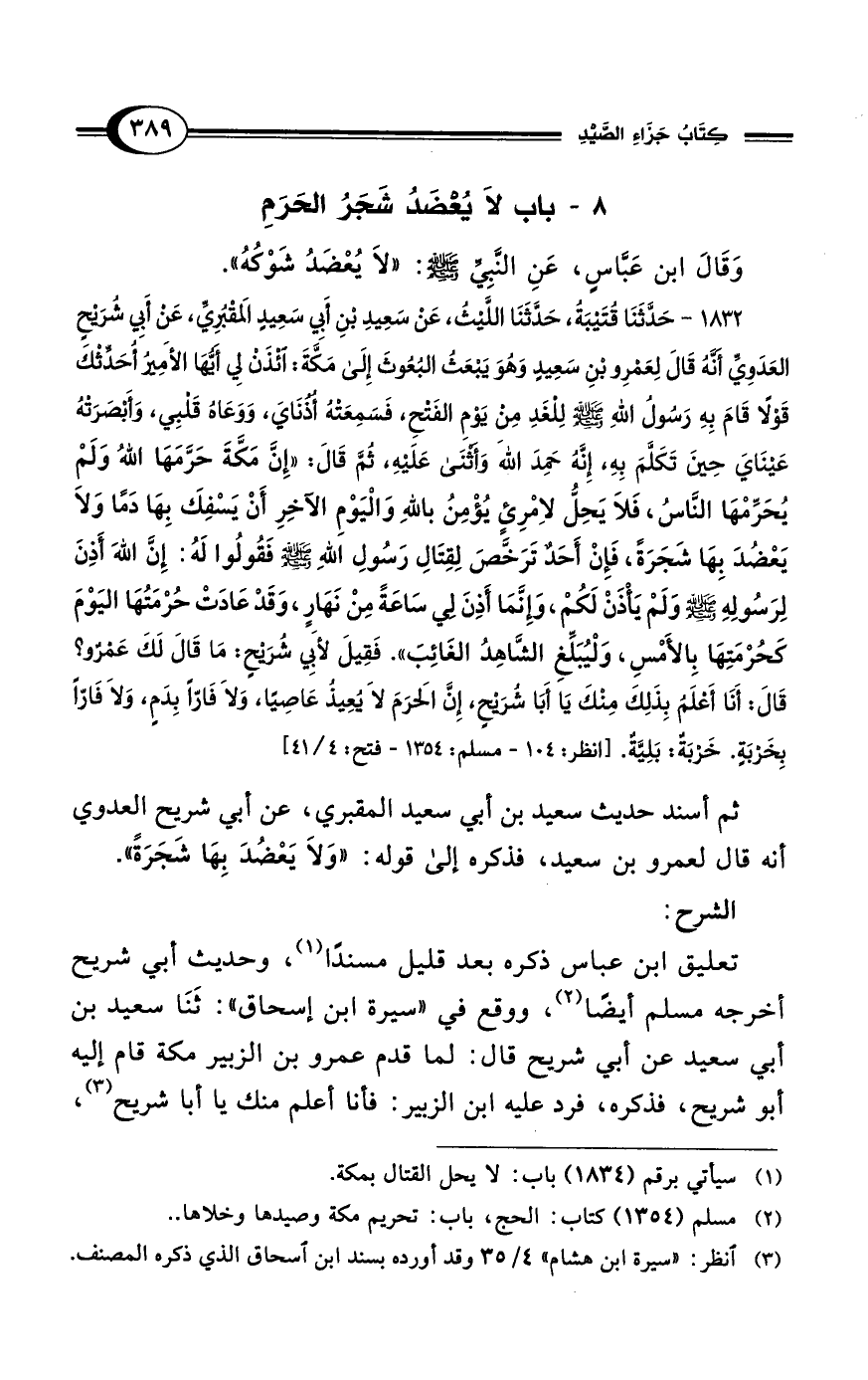 8 - باب لاَ يُعْضَدُ شَجَرُ الحَرَمِ