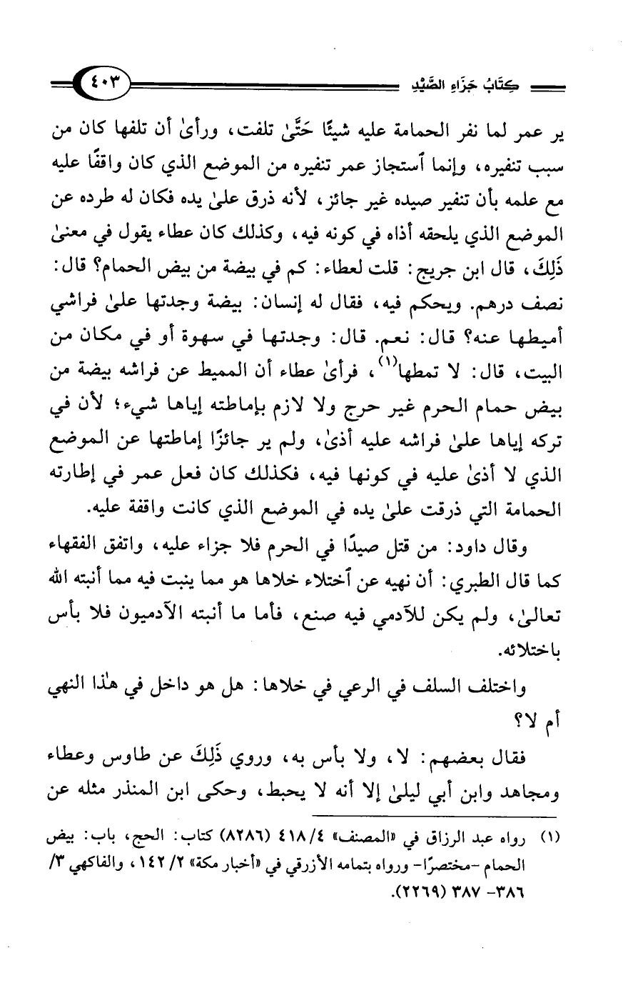(¬1) رواه عبد الرزاق في "المصنف" 4/ 418 (8286) كتاب: الحج، باب: بيض الحمام -مختصرًا- ورواه بتمامه الأزرقي في "أخبار مكة" 2/ 142، والفاكهي 3/ 386 - 387 (2269).
