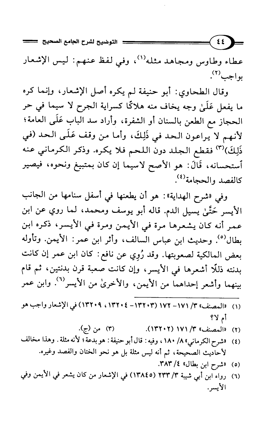(¬1) "المصنف" 3/ 171 - 172 (13203 - 13204، 13209) في الإشعار واجب هو أم لا؟