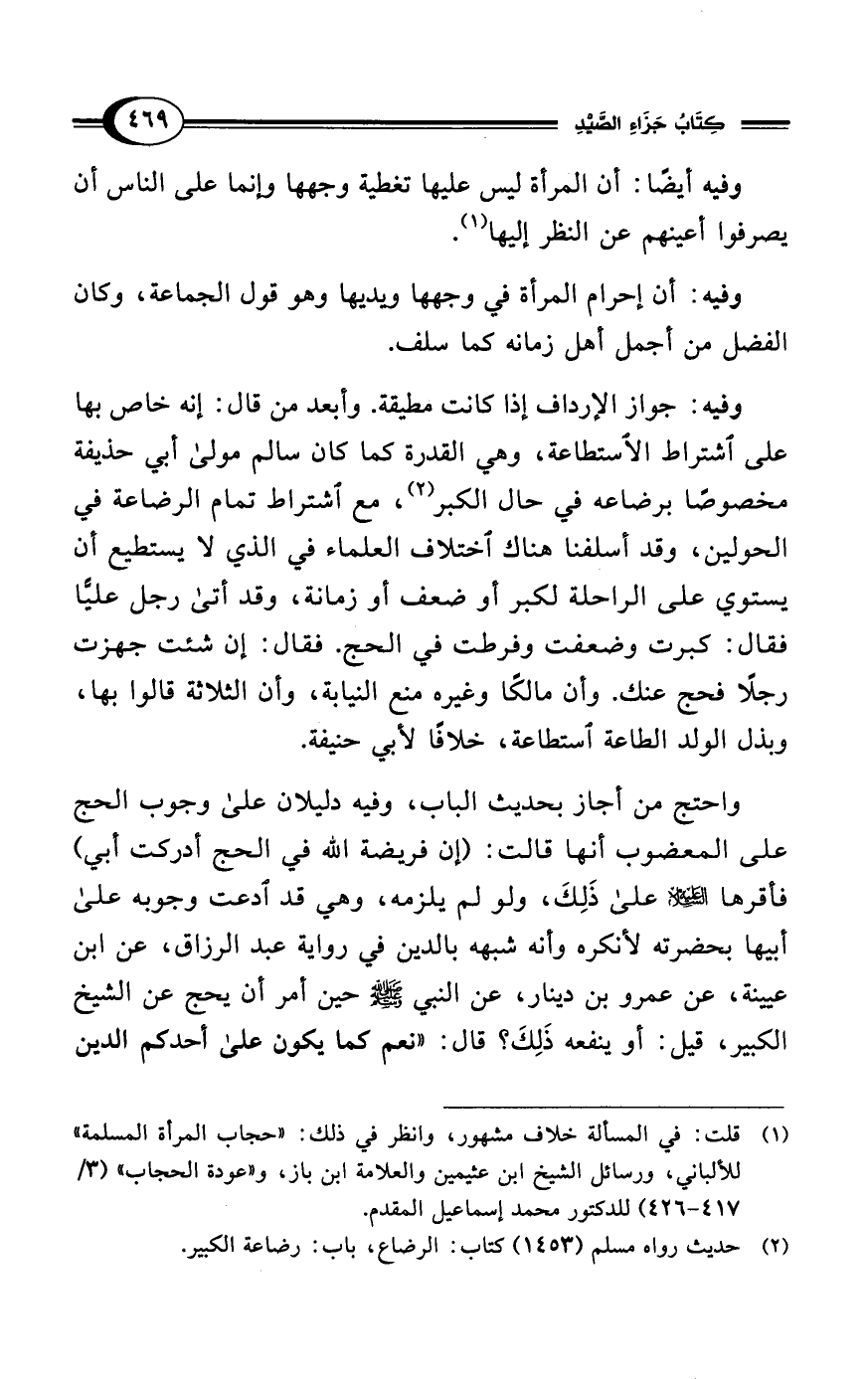 (¬1) قلت: في المسألة خلاف مشهور، وانظر في ذلك: "حجاب المرأة المسلمة" للألباني، ورسائل الشيخ ابن عثيمين والعلامة ابن باز، و"عودة الحجاب" (3/ 417 - 426) للدكتور محمد إسماعيل المقدم.