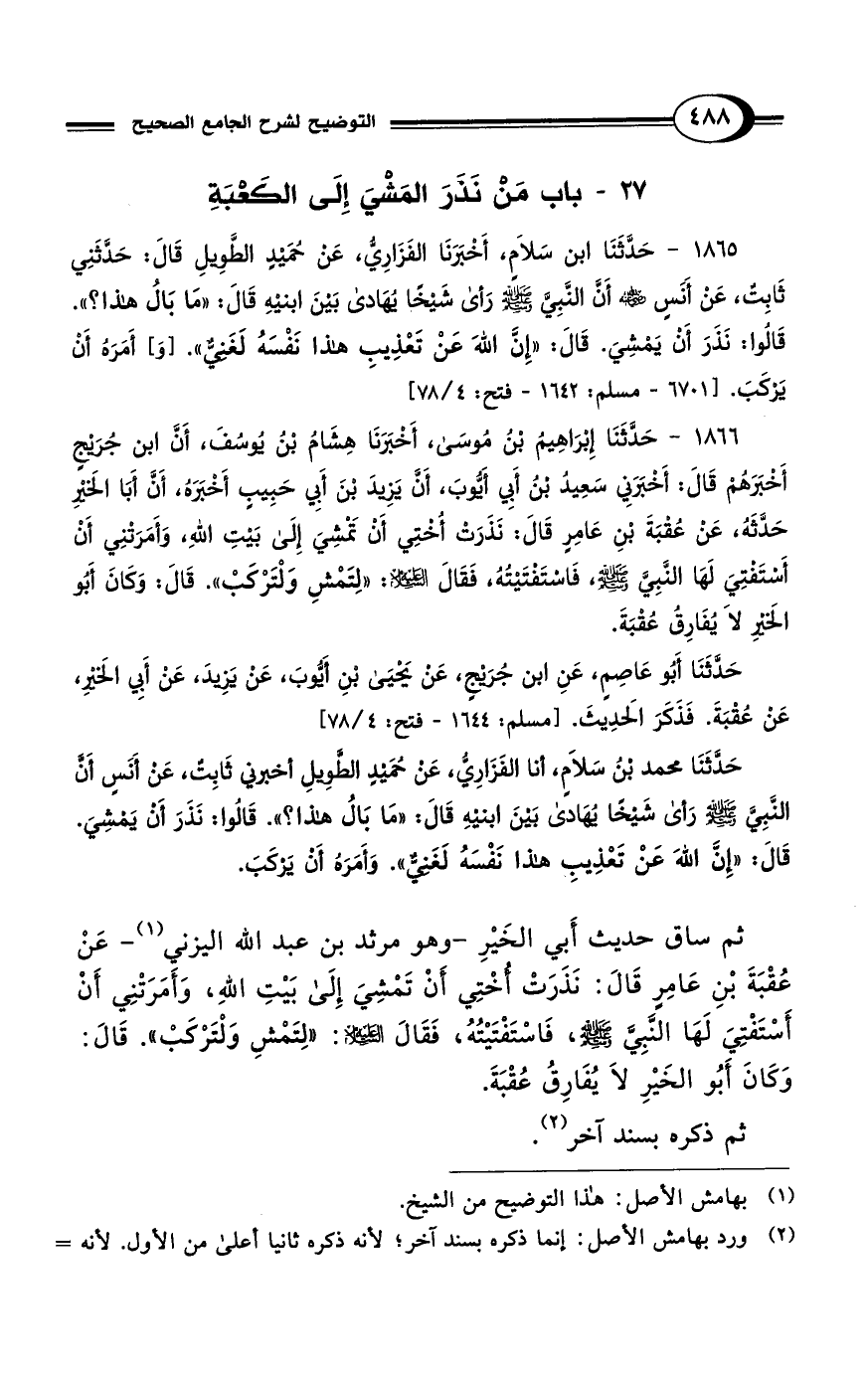 27 - باب مَنْ نَذَرَ المَشْيَ إِلَى الكَعْبَةِ