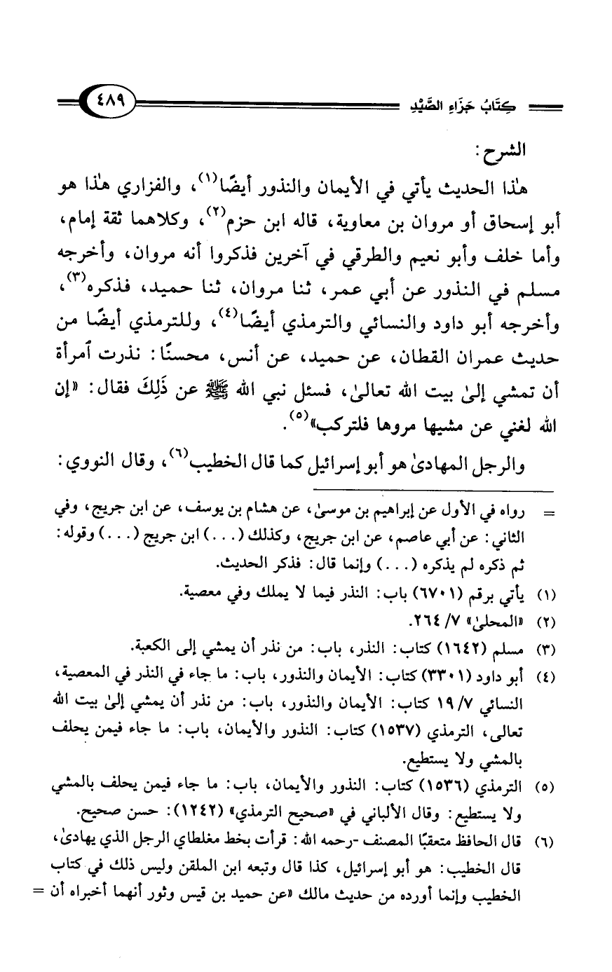 (¬4) أبو داود (3301) كتاب: الأيمان والنذور، باب: ما جاء في النذر في المعصية، النسائي 7/ 19 كتاب: الأيمان والنذور، باب: من نذر أن يمشي إلى بيت الله تعالى، الترمذي (1537) كتاب: النذور والأيمان، باب: ما جاء فيمن يحلف بالمشي ولا يستطيع.