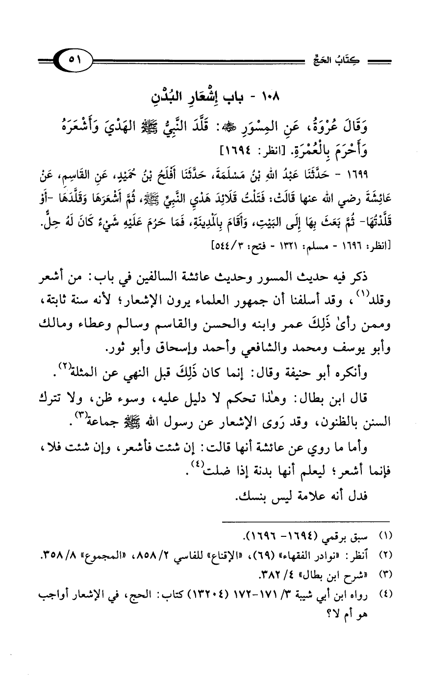 (¬4) رواه ابن أبي شيبة 3/ 171 - 172 (13204) كتاب: الحج، في الإشعار أواجب هو أم لا؟