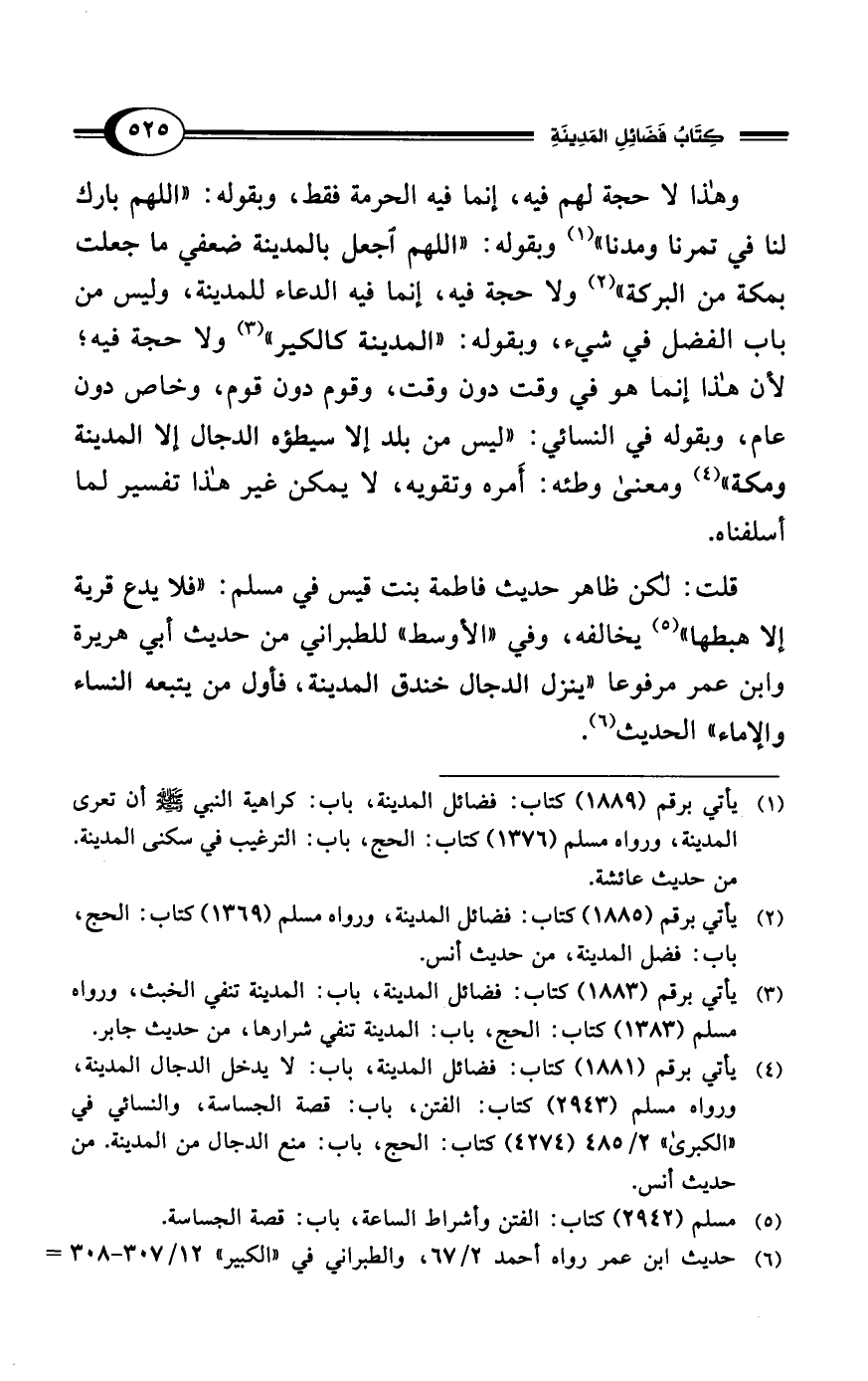 وهذا لا حجة لهم فيه، إنما فيه الحرمة فقط، وبقوله: "اللهم بارك لنا في تمرنا ومدنا" (¬1) وبقوله: "اللهم اجعل بالمدينة ضعفي ما جعلت بمكة من البركة" (¬2) ولا حجة فيه، إنما فيه الدعاء للمدينة، وليس من باب الفضل في شيء، وبقوله: "المدينة كالكير" (¬3) ولا حجة فيه؛ لأن هذا إنما هو في وقت دون وقت، وقوم دون قوم، وخاص دون عام، وبقوله في النسائي: "ليس من بلد إلا سيطؤه الدجال إلا المدينة ومكة" (¬4) ومعنى وطئه: أَمره وتقويه، لا يمكن غير هذا تفسير لما أسلفناه.