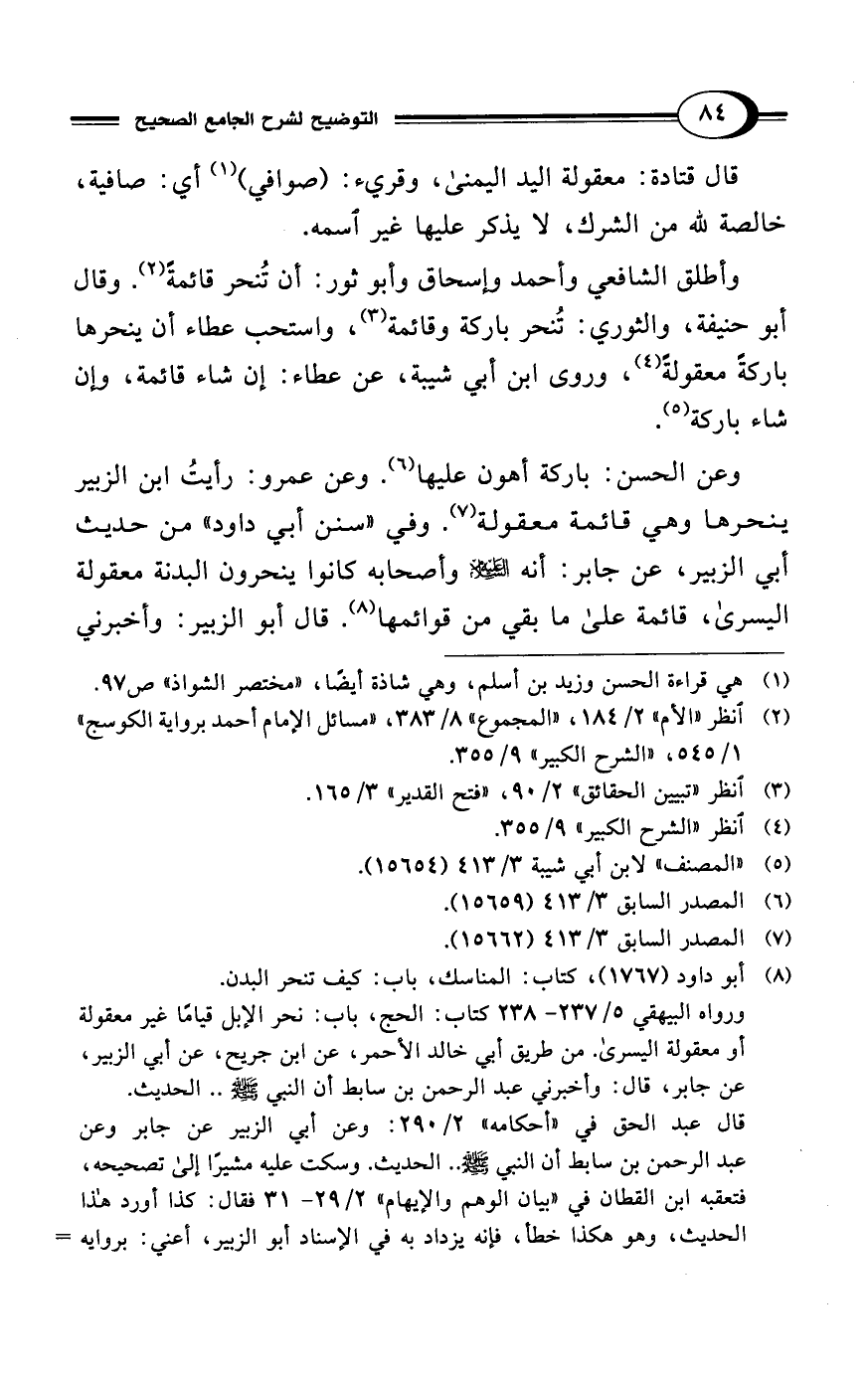 (¬8) أبو داود (1767)، كتاب: المناسك، باب: كيف تنحر البدن.
