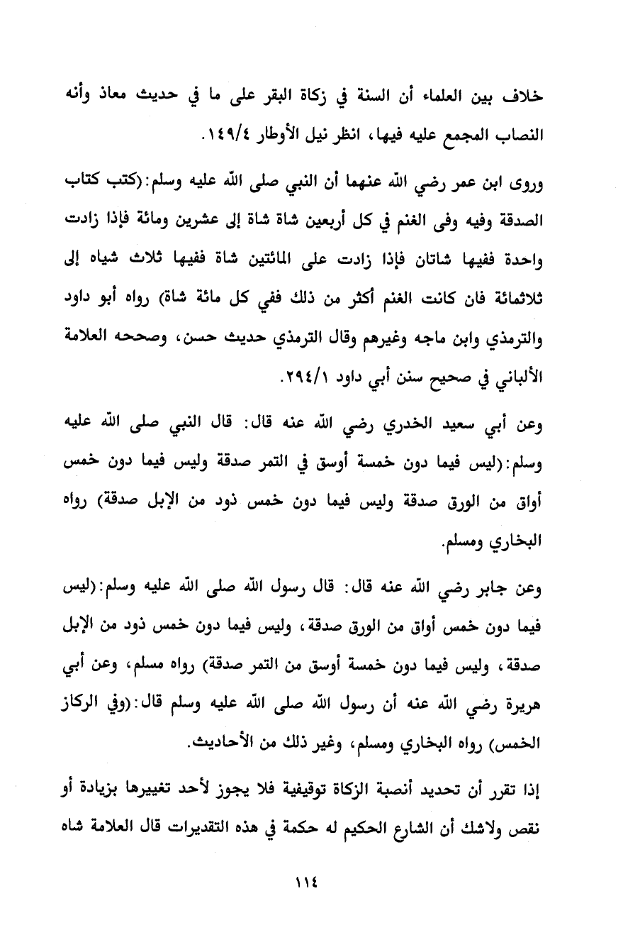 وعن أبي سعيد الخدري رضي الله عنه قال: قال النبي صلى الله عليه وسلم: (ليس فيما دون خمسة أوسق في التمر صدقة وليس فيما دون خمس أواق من الورق صدقة وليس فيما دون خمس ذود من الإبل صدقة) رواه البخاري ومسلم.