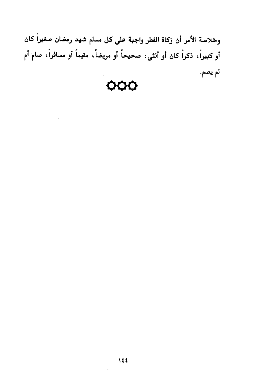 وخلاصة الأمر أن زكاة الفطر واجبة على كل مسلم شهد رمضان صغيراً كان أو كبيراً، ذكراً كان أو أنثى، صحيحاً أو مريضاً، مقيماً أو مسافراً، صام أم لم يصم.