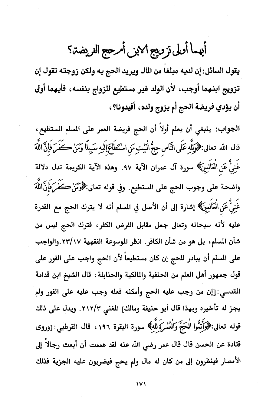 أيهما أولى تزويج الابن أم حج الفريضة؟