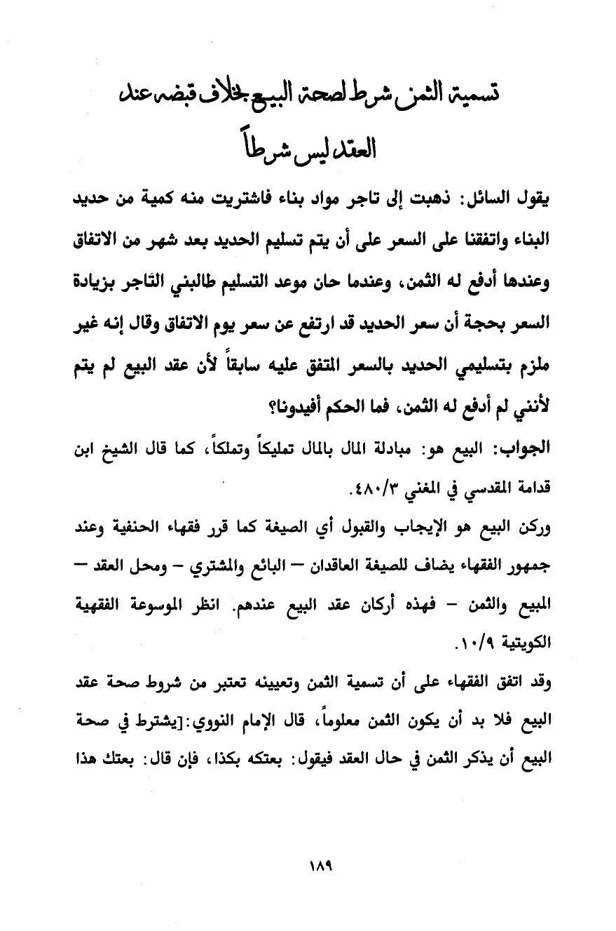 تسمية الثمن شرط لصحة البيع بخلاف قبضه عند