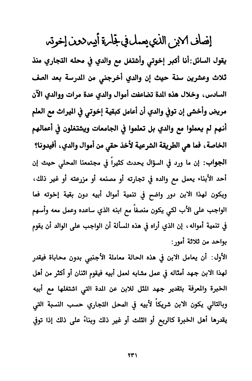 إنصاف الابن الذي يعمل في تجارة أبيه دون إخوته