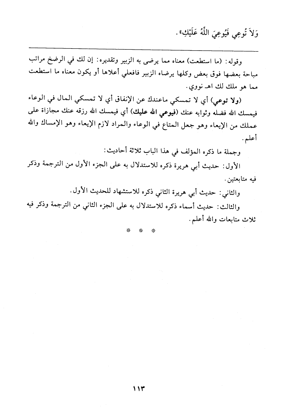 وَلَا تُوعِي فَيُوعِيَ اللهُ عَلَيكِ"
