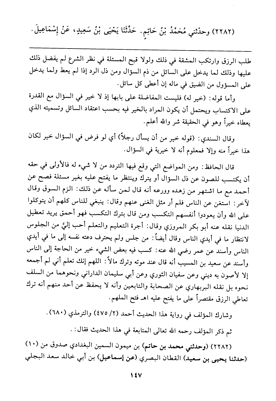 (٢٢٨٢) وحدّثني مُحَمَّدُ بْنُ حَاتِمٍ. حَدَّثَنَا يَحْيَى بْنُ سَعِيدٍ، عَنْ إِسْمَاعِيلَ