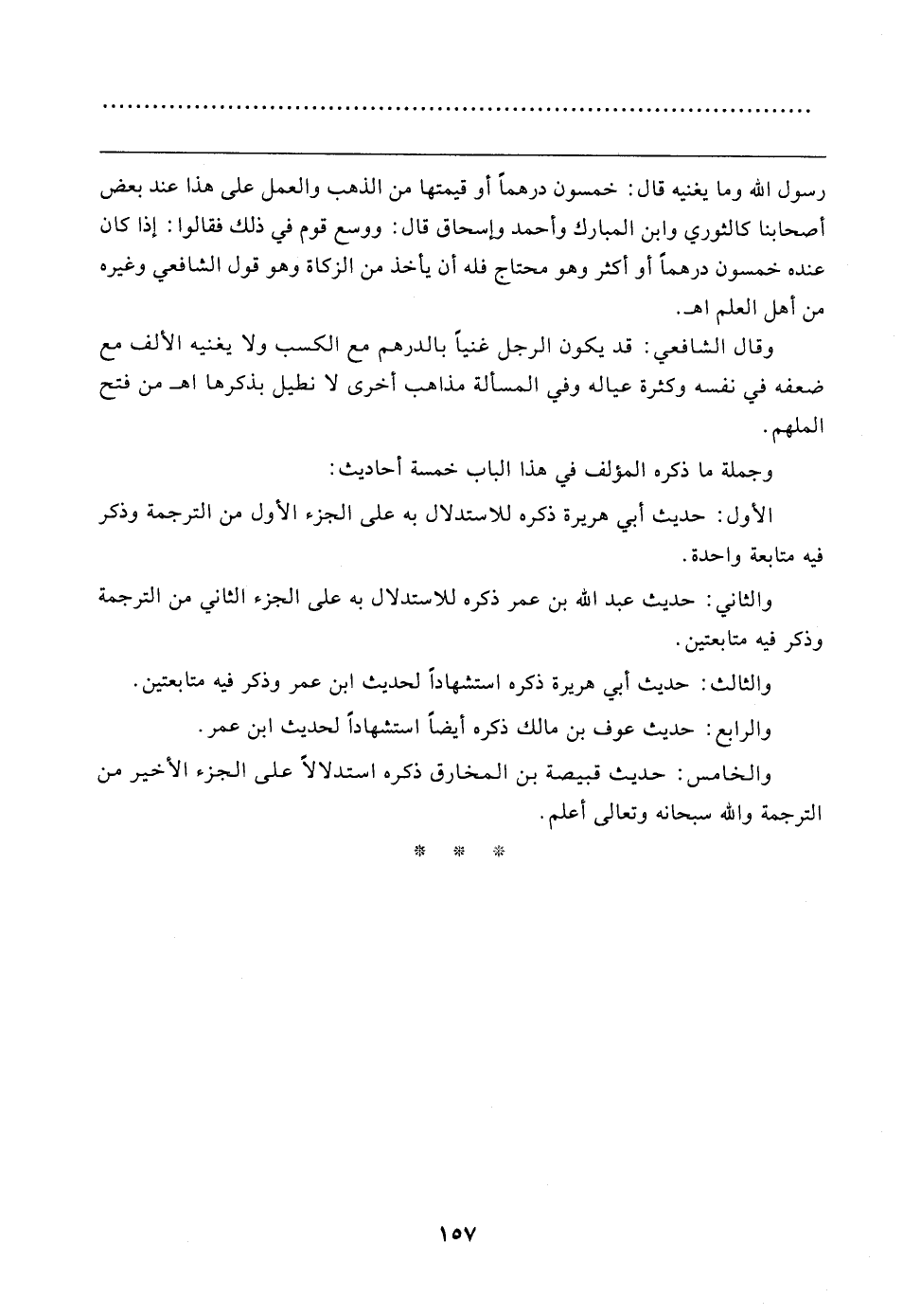 والخامس: حديث قبيصة بن المخارق ذكره استدلالًا على الجزء الأخير من الترجمة والله سبحانه وتعالى أعلم.