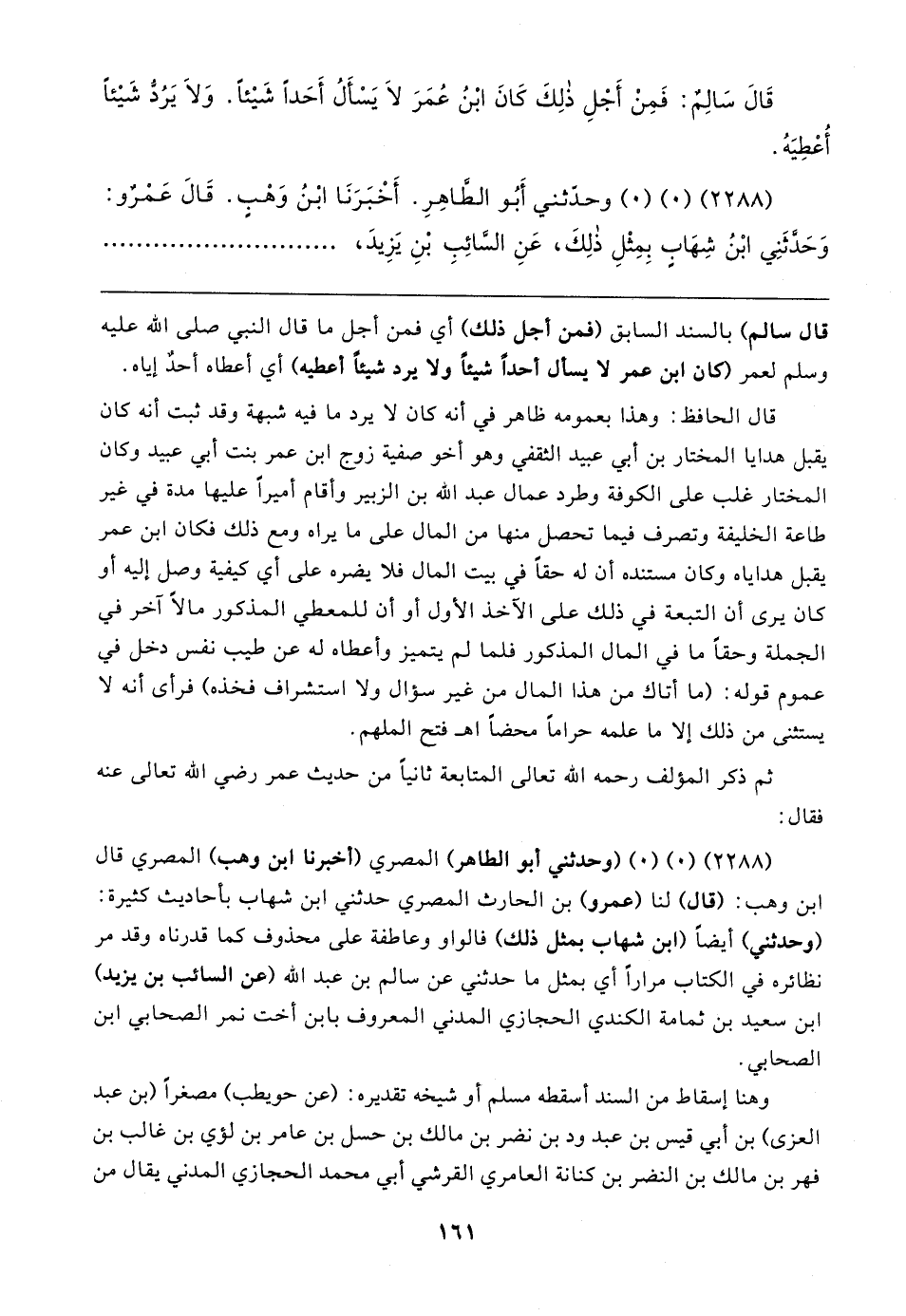 (٢٢٨٨) (٠) (٠) (وحدثني أبو الطاهر) المصري (أخبرنا ابن وهب) المصري قال ابن وهب: (قال) لنا (عمرو) بن الحارث المصري حدثني ابن شهاب بأحاديث كثيرة: (وحدثني) أيضًا (ابن شهاب بمثل ذلك) فالواو وعاطفة على محذوف كما قدرناه وقد مر نظائره في الكتاب مرارًا أي بمثل ما حدثني عن سالم بن عبد الله (عن السائب بن يزيد) ابن سعيد بن ثمامة الكندي الحجازي المدني المعروف بابن أخت نمر الصحابي ابن الصحابي.