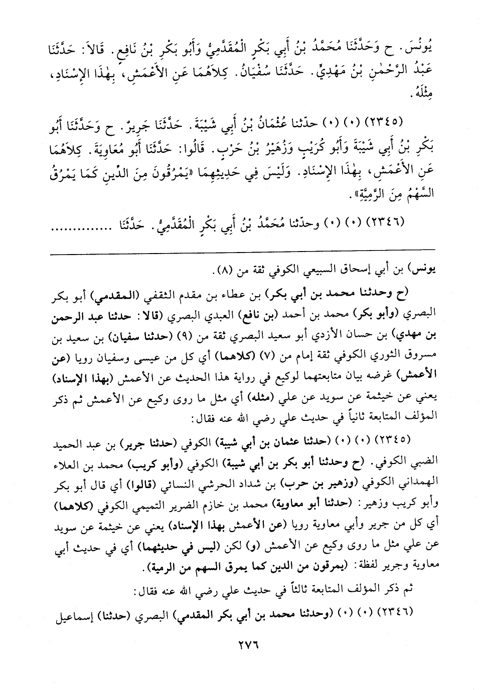 (٢٣٤٥) (٠) (٠) حدَّثنا عُثْمَانُ بْنُ أَبِي شَيبَةَ. حَدَّثَنَا جَرِيرٌ. ح وَحَدَّثَنَا أَبُو بَكْرِ بْنُ أَبِي شَيبَةَ وَأَبُو كُرَيبٍ وَزُهَيرُ بْنُ حَرْبٍ. قَالُوا: حَدَّثَنَا أَبُو مُعَاويَةَ. كِلاهُمَا عَنِ الأعْمَشِ، بِهذَا الإِسْنَادِ. وَلَيسَ فِي حَدِيثِهِمَا "يَمْرُقُونَ مِنَ الدِّينِ كَمَا يَمْرُقُ السَّهْمُ مِنَ الرُّمِيَّةِ".