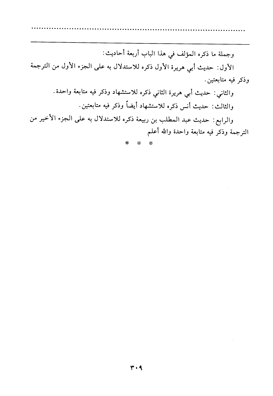 وجملة ما ذكره المؤلف في هذا الباب أربعة أحاديث: