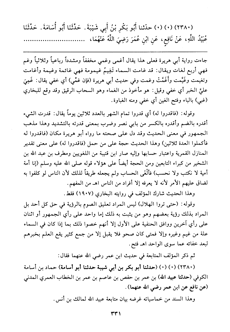 (٢٣٨٠) (٠) (٠) (حَدَّثَنَا أبو بكر بن أبي شيبة حَدَّثَنَا أبو أسامة) حماد بن أسامة الكوفي (حَدَّثَنَا عبيد الله) بن عمر بن حفص بن عاصم بن عمر بن الخطاب العمري المدني (عن نافع عن ابن عمر رضي الله عنهما).