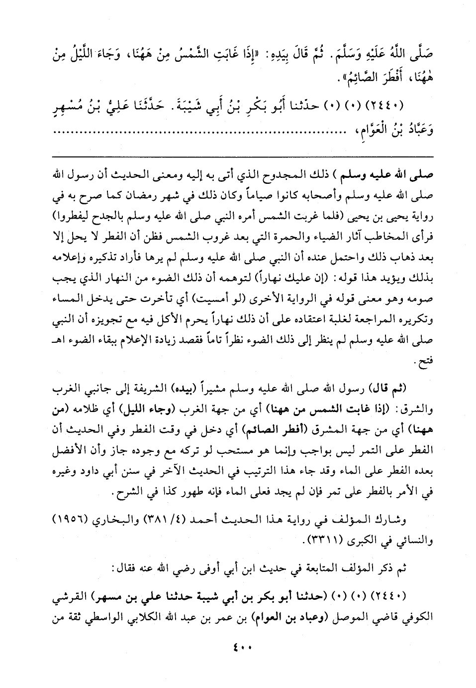 (٢٤٤٠) (٠) (٠) (حدثنا أبو بكر بن أبي شيبة حدثنا علي بن مسهر) القرشي الكوفي قاضي الموصل (وعباد بن العوام) بن عمر بن عبد الله الكلابي الواسطي ثقة من