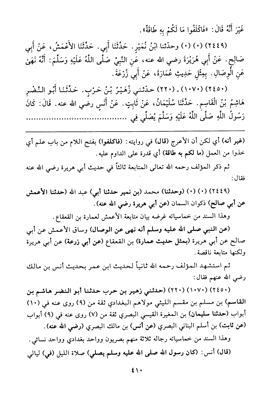 (٢٤٤٩) (٠) (٠) (وحدثنا) محمد (بن نمير حدثنا أبي) عبد الله (حدثنا الأعمش عن أبي صالح) ذكوان السمان (عن أبي هريرة رضي الله عنه).