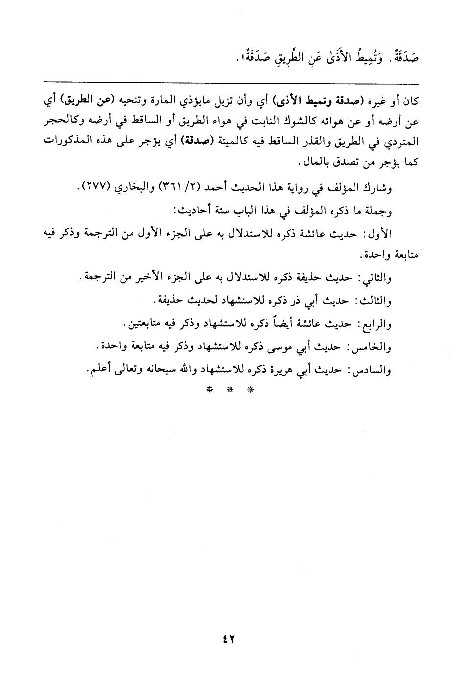 وجملة ما ذكره المؤلف في هذا الباب ستة أحاديث: