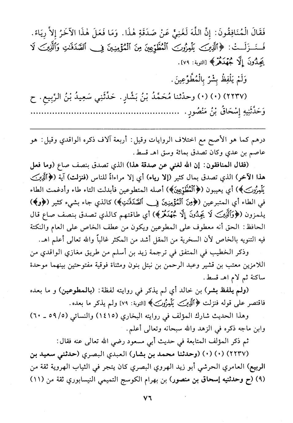 (٢٢٣٧). (٠). (٠) (وحدثنا محمد بن بشار) العبدي البصري (حدثني سعيد بن الربيع) العامري الحرشي أبو زيد الهروي البصري كان يتجر في الثياب الهروية ثقة من (٩) (ح وحدثنيه إسحاق بن منصور) بن بهرام الكوسج التميمي النيسابوري ثقة من (١١)