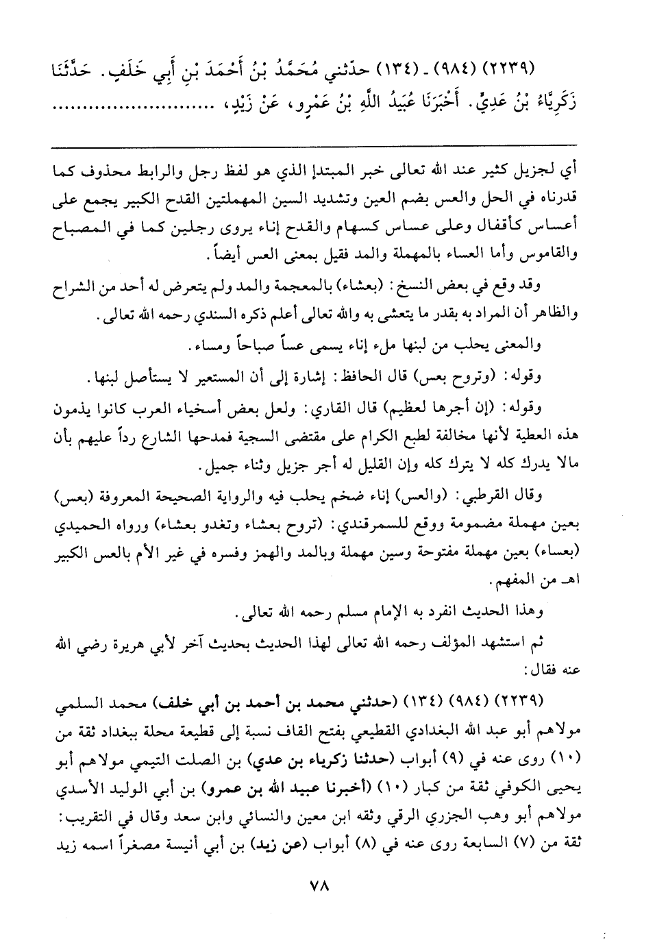 (٢٢٣٩) (٩٨٤) - (١٣٤) حدّثني مُحَمدُ بْنُ أحمَدَ بْنِ أَبِي خَلَفٍ. حَدَّثَنَا زَكَرياءُ بْنُ عَدِي. أَخْبَرَنَا عُبَيدُ الله بْنُ عَمرٍو، عَنْ زَيدٍ،