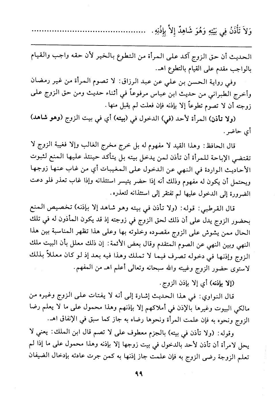 وَلَا تَأْذَنْ فِي بَيتِهِ وَهُوَ شَاهِد إلا بِإِذْنِهِ
