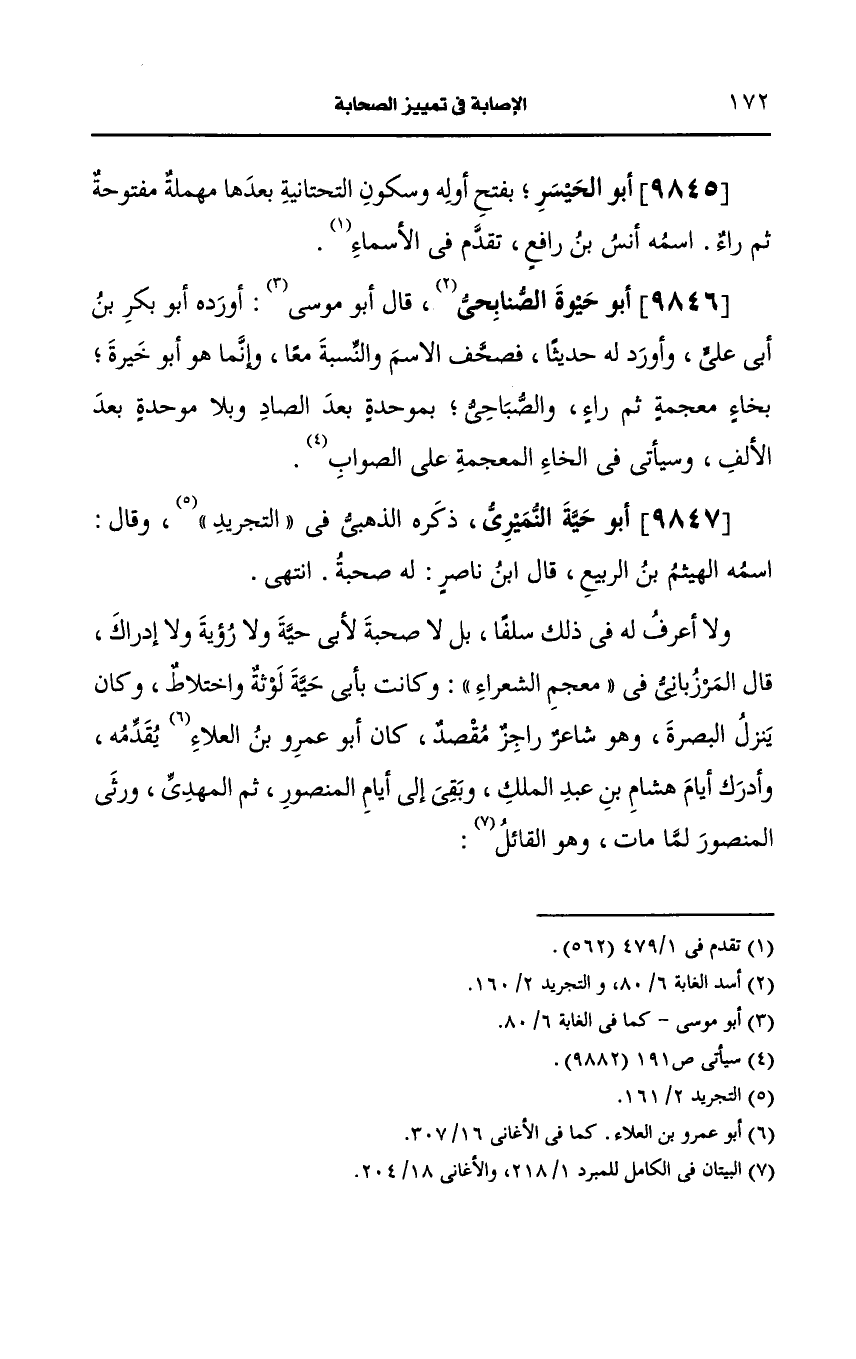 9845- أَبو الحيسر بفتح أوله وسكون التحتانية بعدها مهملة مفتوحة ثم راء.
