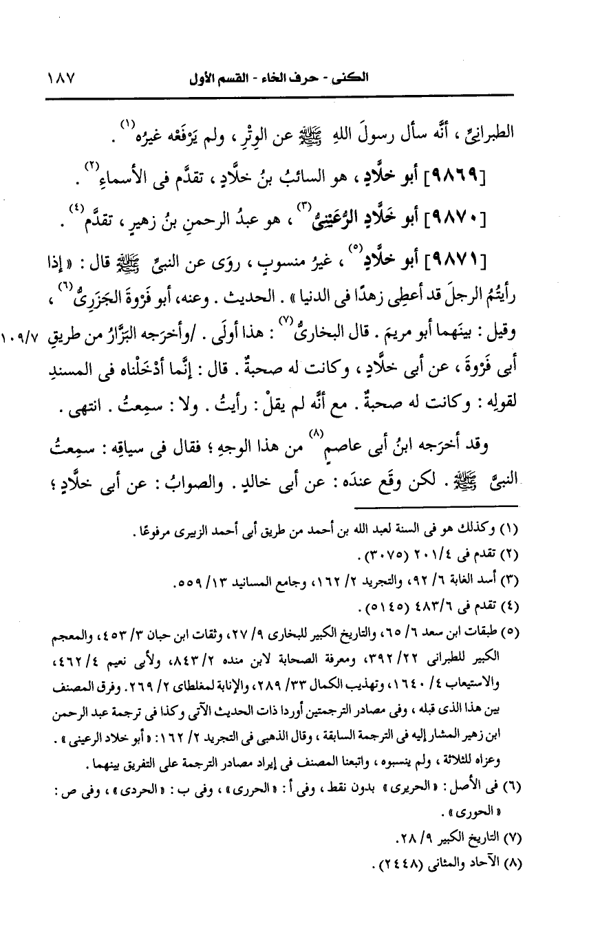 9871- أَبو خَلاَّد غير منسوب.