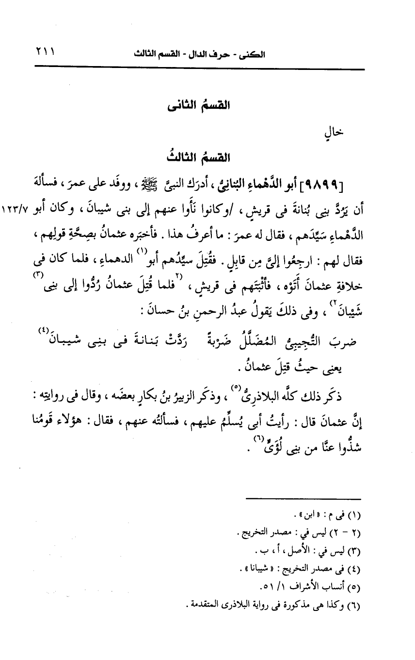 وذكر الزبير بن بكار بعضه وقال في روايته إن عثمان، قال: رَأيتُ أبي يسلم عليهم فسألته عنهم فقال هؤلاء قومنا شدوا عنا من بني لؤي بن غالب.