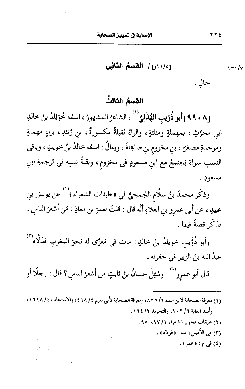 9908- أَبو ذؤيب الهذلي الشاعر المشهور.