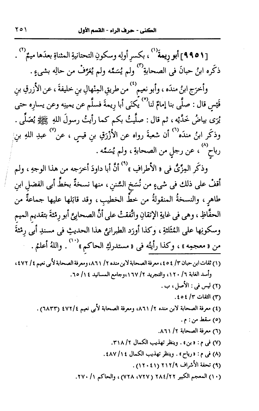 9951- أَبو ريمة بكسر أوله وسكون التحتانية المثناة بعدها ميم.