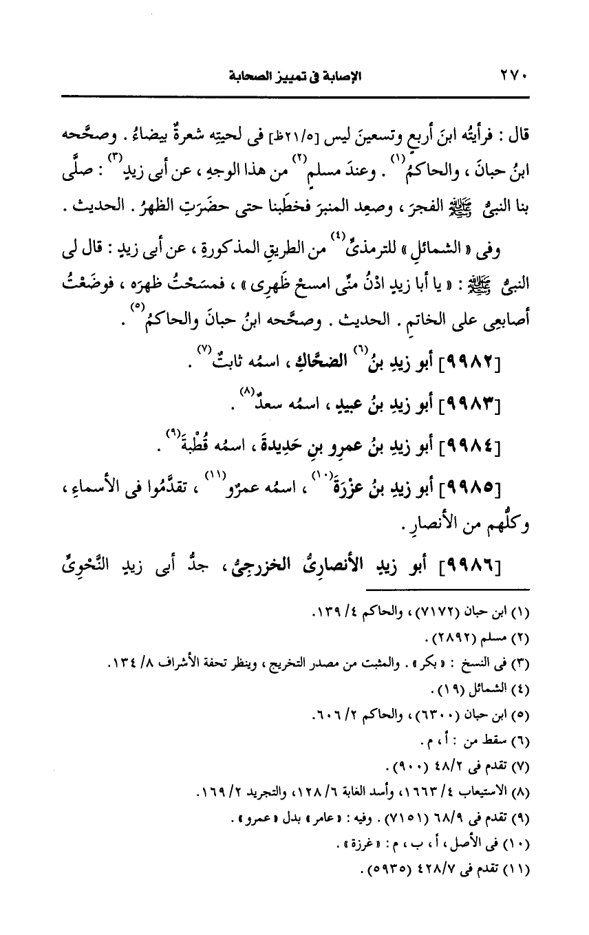 9986- أَبو زيد، الأَنصارِيّ الخزرجي.