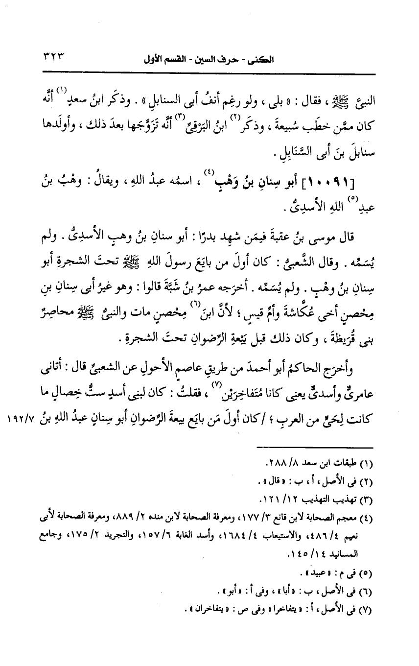 وأَخرجه الحسن بن علي الحلواني ومحمد بن إسحاق السراج من طرق، عَن إسماعيل بن أبي خالد، عَن الشعبي قال أول من بايع تحت الشجرة أَبو سنان بن وهب فذكر القصة.