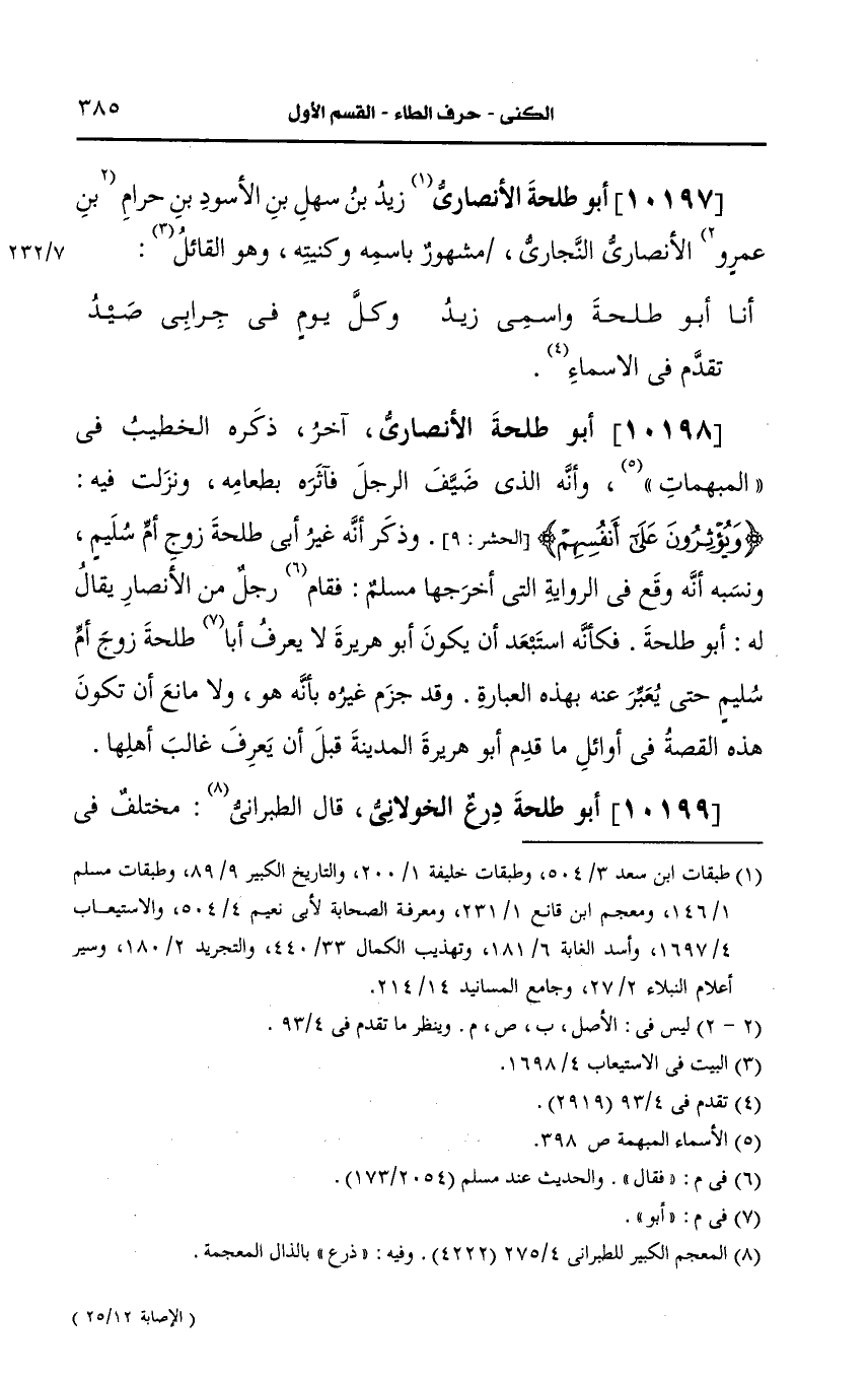 10197- أَبو طلحة، الأَنصارِيّ زيد بن سهل بن الأَسود بن حرام، الأَنصارِيّ النجاري.