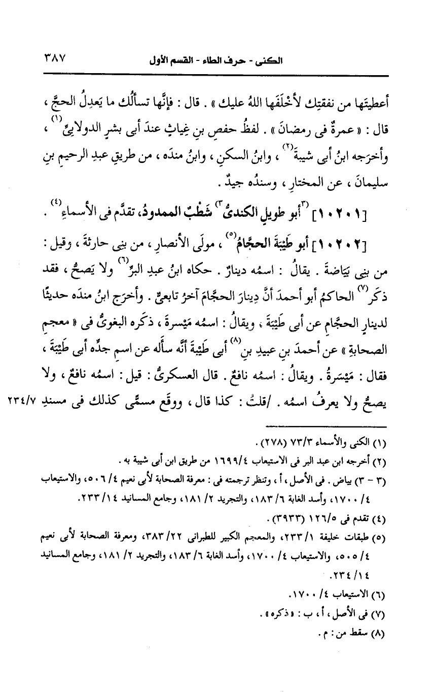 قلت:كَذا قَال ووقع مسمى كذلك في مسند محيصة بن مسعود من مسند أَحمد ثم من طريق يزيد بن أبي حبيب، عَن أبي عفير، الأَنصارِيّ، عَن محمد بن سَهْل بْن أَبِي حَثْمَةَ، عَن محيصة أنه كان له غلام حجام يُقَالُ لَهُ: نافع أَبو طيبة فسأل النَّبيّ صَلى الله عَلَيه وسَلم، عَن خراجه فقال أعلفه الناضح الحديث.