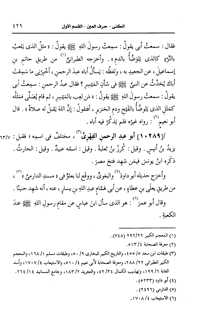 قلت: وقد فرق بينهما بن مندة وهو الذي يظهر رجحانه فقد صرح غير واحد بأن عَبد الله بن يسار تفرد بالرواية، عَن أبي عبد الرحمن الفهري وكأن أبا عمر لما رأى أن الفهري والقُرشِيّ نسبة واحدة ظنهما واحدا.