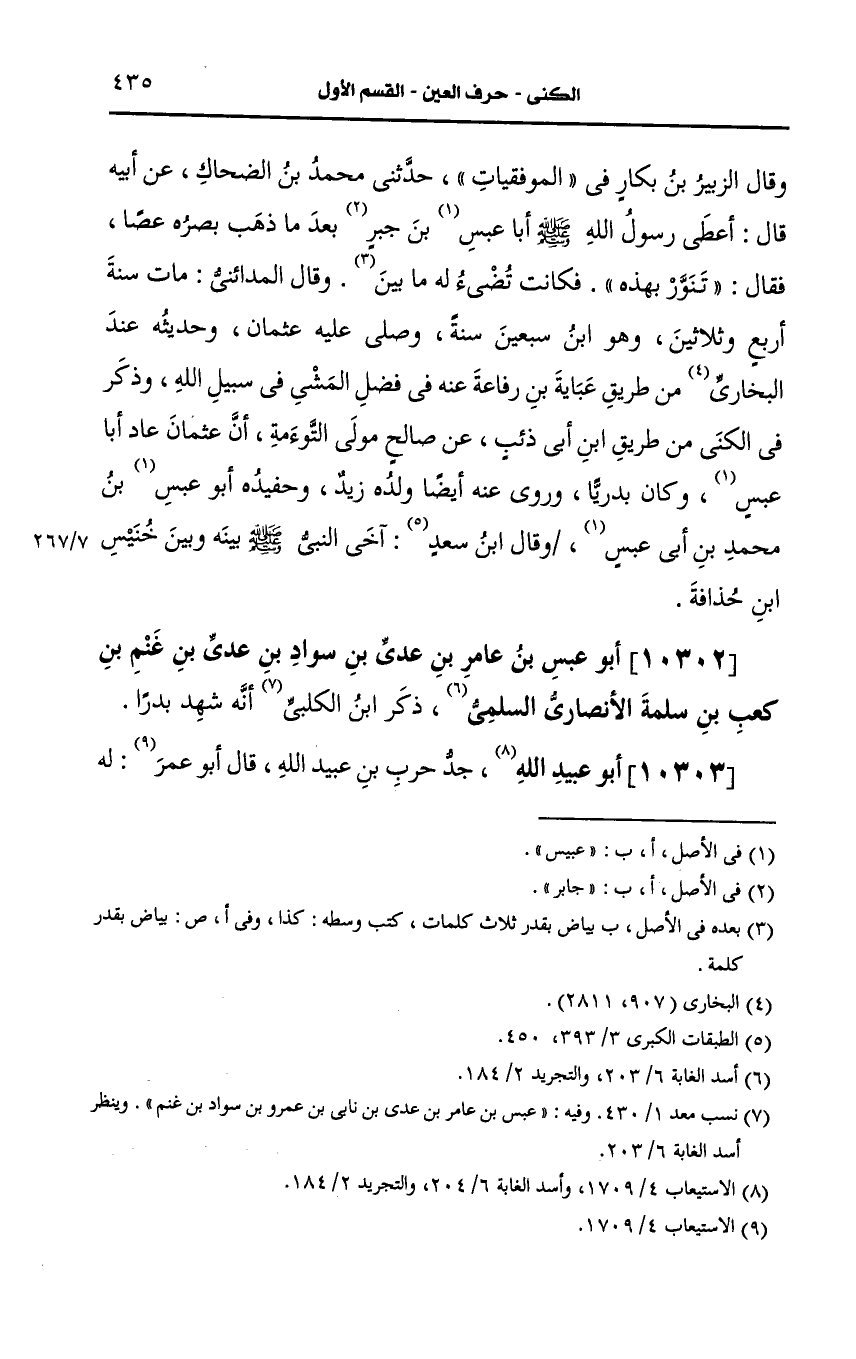 10302- أَبو عبس بن عامر بن عَدِيّ بن سواد بن عَدِيّ بن غنم بن كعب بن سلمة، الأَنصارِيّ السلمي.