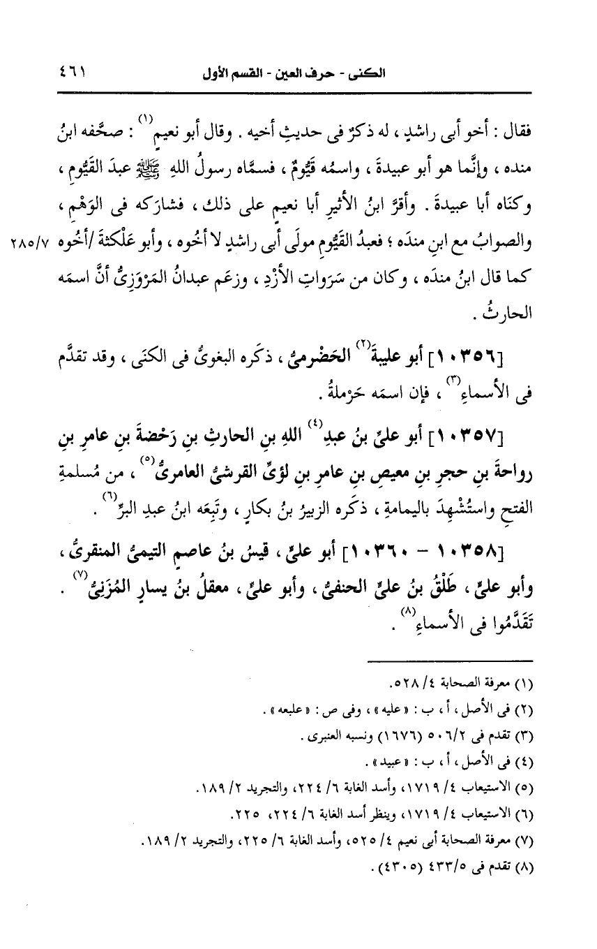 10357- أَبو علي بن عَبد الله بن الحارث بن رحضة بن عامر بن رواحة بن حجر بن معيص بن عامر بن لؤي، القُرشِيّ العامري.