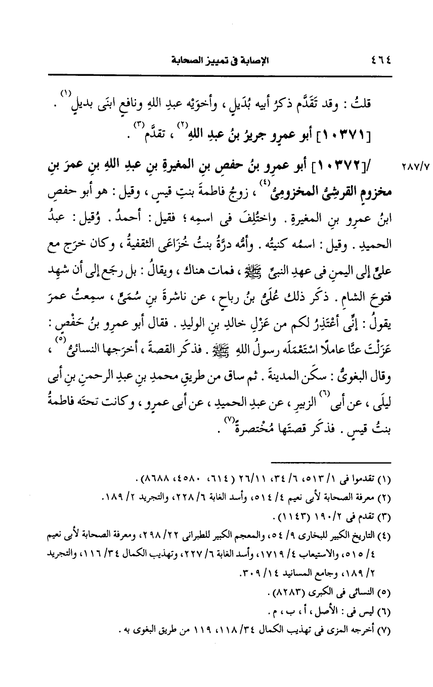 10372- أَبو عَمرو بن حفص بن المغيرة بن عَبد الله بن عمر بن مخزوم، القُرشِيّ المخزومي.
